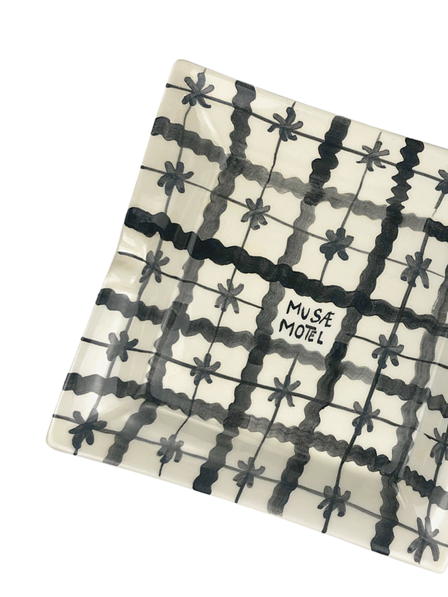 Decorato con intricati motivi in nero e grigio su fondo crema, questo posacenere da 17x17 cm unisce l’eleganza minimalista a un’estetica ispirata al vintage.
