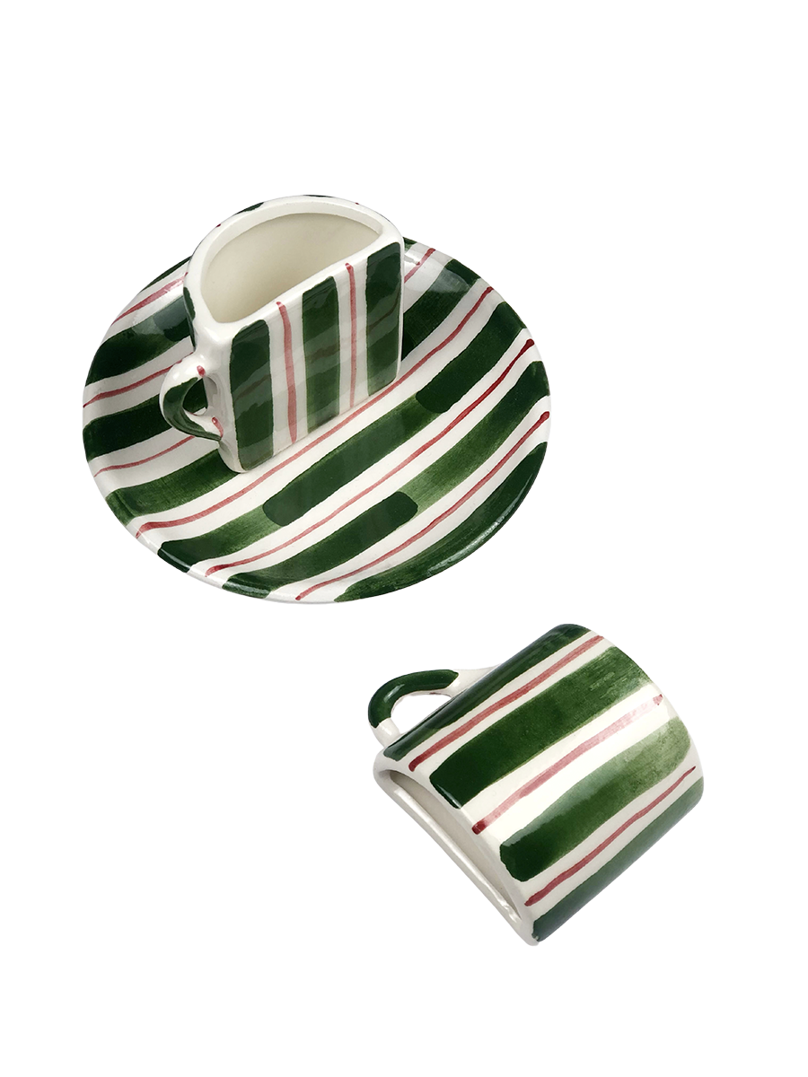 Set tazze Tête a Tête - Strisce Verdi e Bordeaux