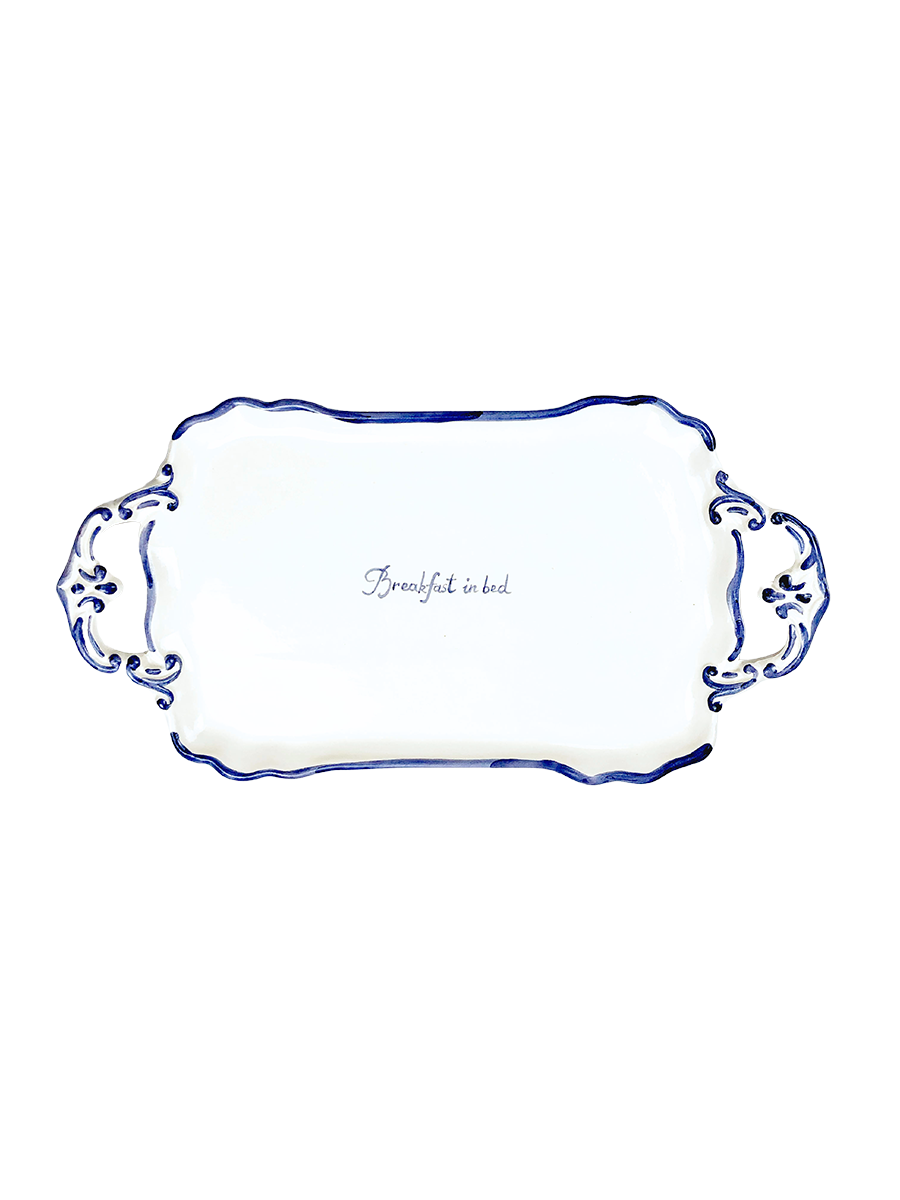 Misura 34 x 16 cm e presenta la frase “Breakfast in bed” dipinta a mano.