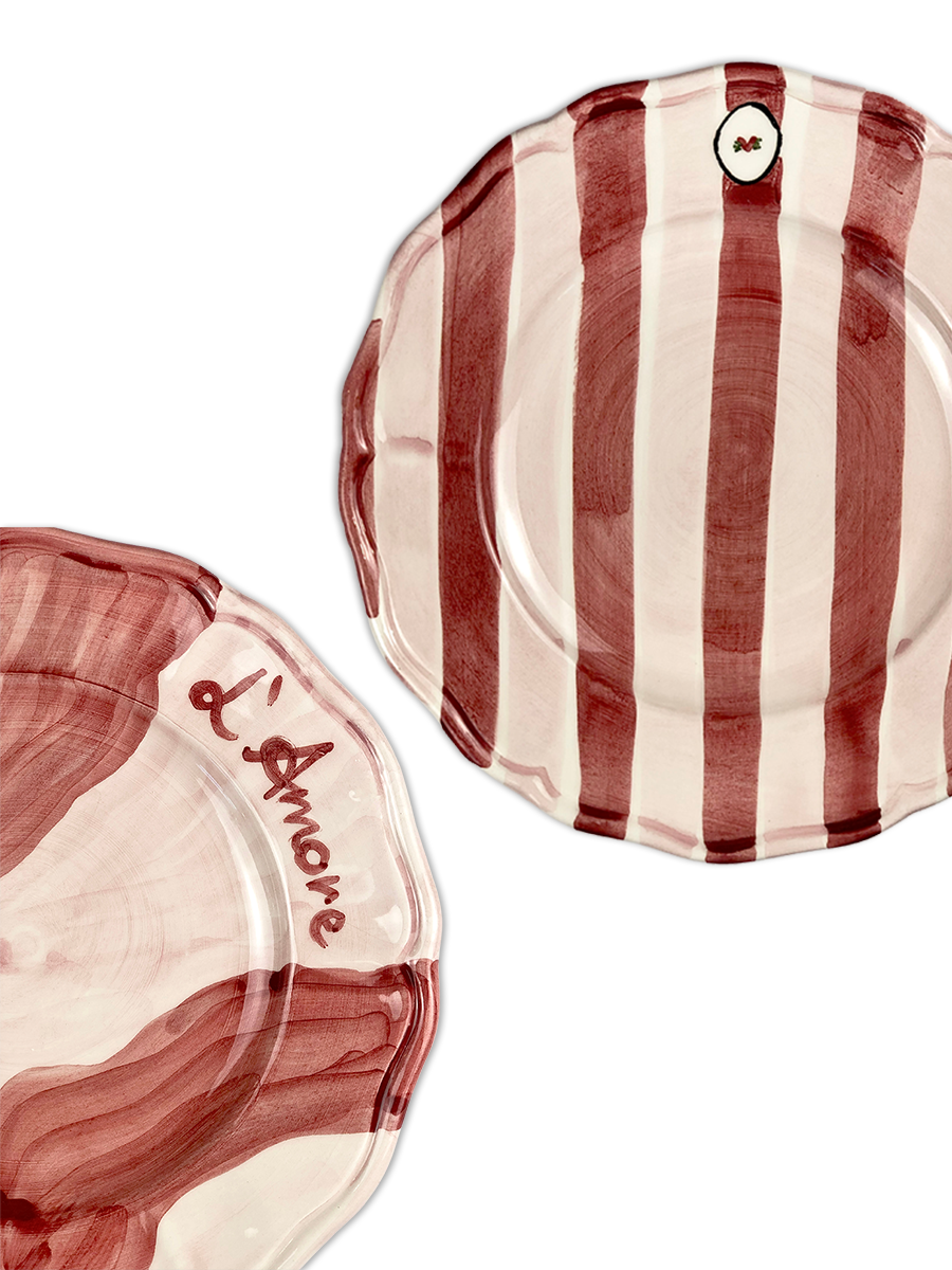 Il secondo piatto è impreziosito dalla scritta L’Amore lungo il bordo, trasformando ogni pasto in una evento dal sapore intimo e sentito.